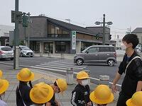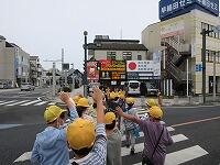 大通りに出ました。信号ではしっかりと手を挙げて了解、安全を確認して花丸渡っています。栃木駅到着!「でんしゃ電車にのったことあるよ~。」