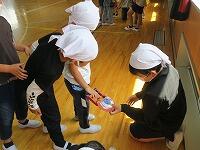 清掃場所では、清掃の役割分担了解をしたり、清掃用具の場所を確認虫眼鏡したり、自分のゴム手袋に名前を記入鉛筆したりしました。