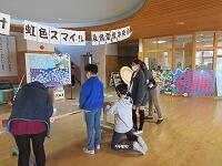 体育館の入り口を飾付け、昇降口の清掃