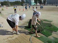 体育館器具庫や体育小屋の荷物も、すべて出して整理整頓、石灰小屋も整えました。