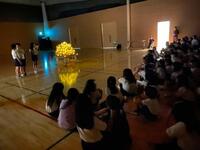 一人一人がLEDのキャンドルをつけて、光のオブジェを作りました。