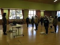 校舎1・2階では、「富士見町」「倭町」「湊町」「錦町」「柳橋町」のみなさんが集合していました。学区外から送迎で登校しているみなさんは、交通安全のDVD