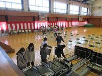 まず、6年生が座るいすを、体育館前方に間隔をとって並べました