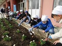 昨日、校庭の花壇にチューリップの球根を植えてくれた栽培委員会
