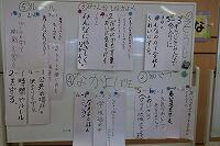 提案理由を説明しましたあと、あらかじめ各学級で話し合ってもらった案を、内容ごとに5つ