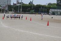 先週、体育館でチームの顔合わせと大まかなルールを確認しましたが、今日は校庭で実際に走りました。