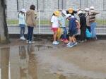 、校庭も水浸しになっていました。4年生の理科では「地面を流れる水のゆくえ」の学習をしています。4時間目にちょうど雨がやんだので、早速観察に行きました。