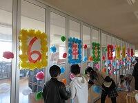 ドアのガラスもピカピカキラキラにみがき急ぎ(田端先生が記録写真視聴覚を撮影していました。)、6年生星に喜んで笑うもらえるよう、教室やオープンスペース側の壁面を飾りつけキラキラました。