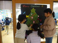 今日は、クリスマスイブ。あいにくの雨模様なので、休み時間ににほんご教室を訪れ、ゲームで交流する子どもたちがいました。また、教室にツリーの飾りをつけて盛り上げようとしている子どもたちの姿が見られました。