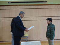 1年間の中で最も長い2学期(79日)が終わりました。終業式の前には、人権作文や小さな親切運動などで県以上の表彰を受けた子どもたちへの表彰を行いました。