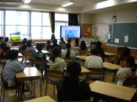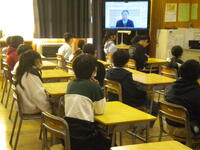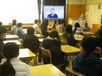 各教室では、画面を見ながら大きな声であいさつしたり、表彰や発表に拍手をしたりしながら、しっかりとした姿勢で聴くことができました。