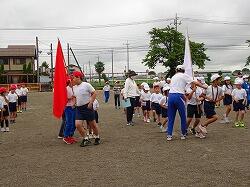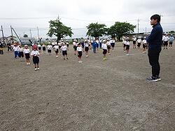 朝は雨が心配でしたが、業間にはちょうどよい曇り空で、校庭での練習ができました