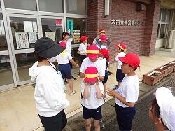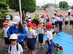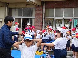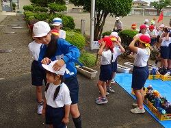 全校リレーの練習も行いました。まずは、はちまきを着けました。上級生が、下級生の面倒をよくみています。