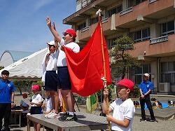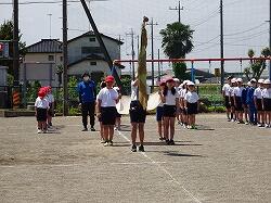 本日の運動会練習は、行進・開会式。さわやかな青空の下、行うことができました。