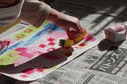 1年生が図工「スタンプ、スタンプ」で作品づくり