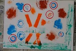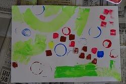 身近な材料と絵スタンプ遊びを楽しんでいましたよ