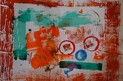 押す・転がす・並べる・ずらす等、いろいろ試しながらやってみたいことを広げていきました。手の感覚を働かせながら、写った形や色の面白さを十分に感じ取っていたようです
