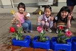 1年生が育てているチューリップが、元気いっぱい 咲きました