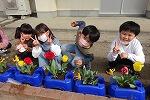 1年生が、一人一鉢で育てているチューリップの観察をしました。