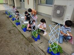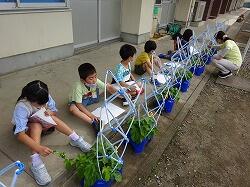 今回1年生は、生活科で学んだ観察の視点(触・視・嗅・聴・思 等)を生かしてメモを取り、国語の学習「観察記録文」で書き表すために、よ~~く観察していましたよ