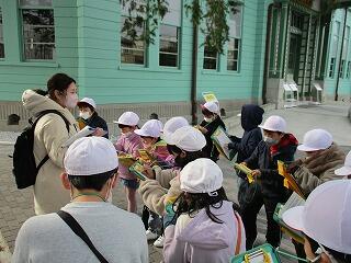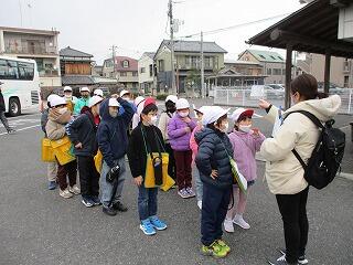 出発前に、道路の歩き方や、見学するときの約束についての話をきちんとした態度で聞くことができました