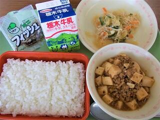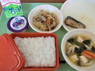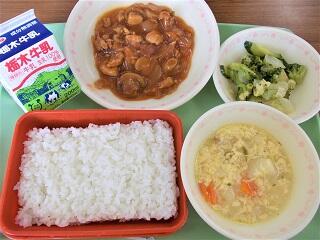 今日のメニュー「かみなりじる」は、とうふをいためるときの音がかみなりに似ていることから、その名前がついたそうです![]()