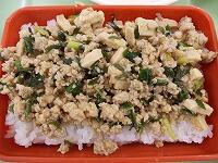 今日は、ニラそぼろ丼でしたオイスターソースの味付けで、豚肉の他に