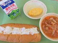 〈メニュー〉はちみつパン、やきそば、揚げ餃子、もやしとヤングコーンのサラダ、牛乳
