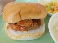 今日はバーガーパンにハンバーグをはさんでいただきます興奮・ヤッター!