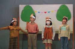 音楽の時間に学習した「森のたんけんたい」で、これまで演奏劇を練習してきました。