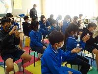 学校歯科医の石塚先生からの講話の後、3ブロックに分かれてブラッシング指導を受けました。