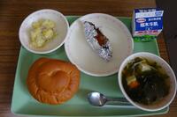 今日 のハヤシライスには、栃木市産 の豚肉 、たまねぎ、じゃがいもが入 っています。地場産 の味 を味 わってください。