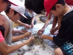 さわやかタイムに、なかよし班ごとにひまわりの種取りをしました。