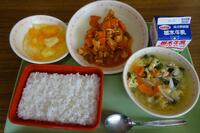 八宝菜 とうもろこしと卵のスープ 豆乳デザート和え