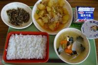 里 いもは、子 いもがたくさんとれることから、おめでたい食 べ物 として日本 の行事食 に使 われています。今日 は、栃木市産 の里 いもと大根 を味噌 で煮 こみました。