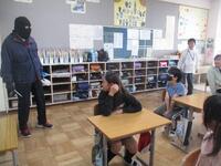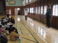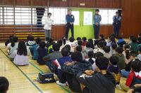 はじめに、警察官の仕事についてお話をうかがいました。児童のためにパンフレットを用意してくださっていました。皆とても真剣に聞いていました