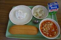 米粉パン 鮭フライあおさ入り ソース 和風根菜シチュー