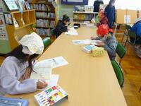 5校時は、3年生と6年生が図工で絵の具を使っての授業をしていました。