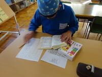 また、今週は「辞書引き大会」も行われ、3年生以上の児童が新聞から出題される言葉の意味を、国語辞典で素早く調べることを競いました。(写真は本選の様子です)