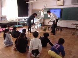 はじめに、何のためにおそうじするか、またそうじの仕方等を、動画でわかりやすく教えていただきました。その後、実際にやってみました。
