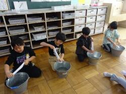 種が取れたので、つるをとって、植木鉢をきれいにした子もいます