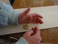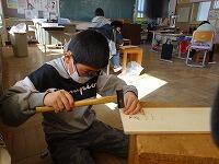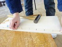 金槌の使い方をよく聞き、安全に気をつけて釘打ちをしました。