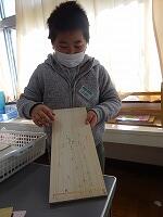今日は図工の時間に、板材に釘を打って、ビー玉が転がるコースをつくりました。