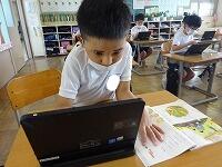 ローマ字をまだ習っていない3年生ですが、ローマ字表を見ながら入力に挑戦している子もいました
