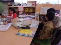 借りた後は、図書の先生が用意してくれたお楽しみのシールを貼っていました