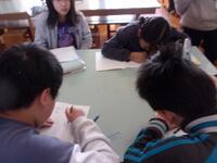 いつも集中し、机の配置を、コの字型にしたり、グループにしたり、全員で一つのグループになり学び合いをしたりしながら授業を進めています