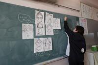 教科書の様々な絵をまねたり、興味のある漢字を使ったりして、オリジナルのクイズをそれぞれ作りました
