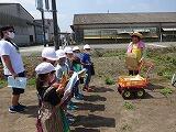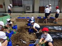 子供達は、苗の植え方を教わり、緊張しながら行っていました。