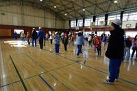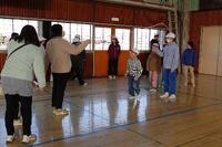 体育館では、こままわし、お手玉・けん玉、紙飛行機・紙でっぽうを、ブースごとに教えていただきました