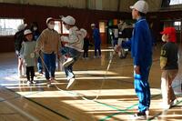 準備体操のあとは、グループに分かれて長なわを跳びます。